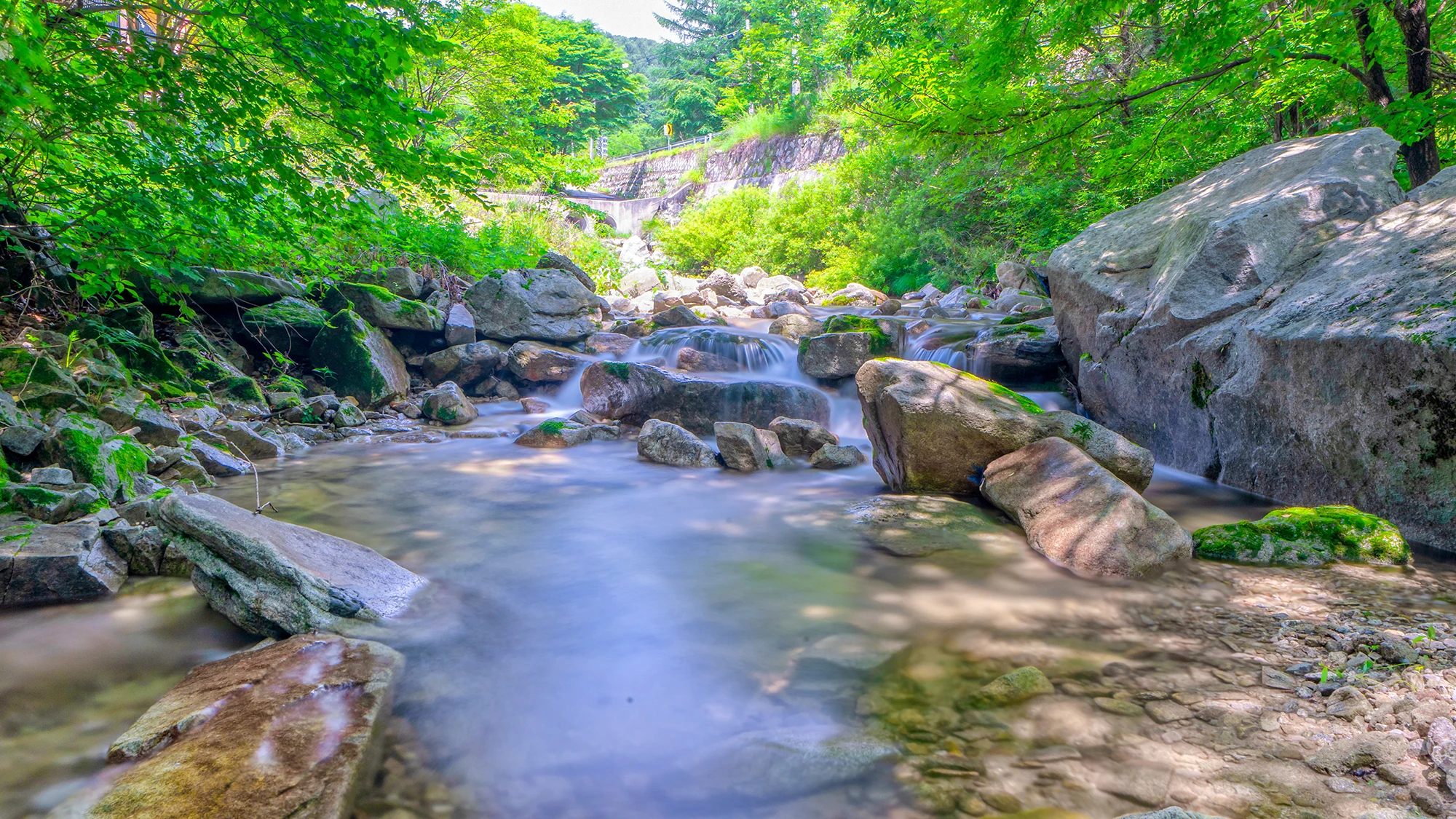 펜션 근처에 맑은 계곡이 위치해 있습니다.